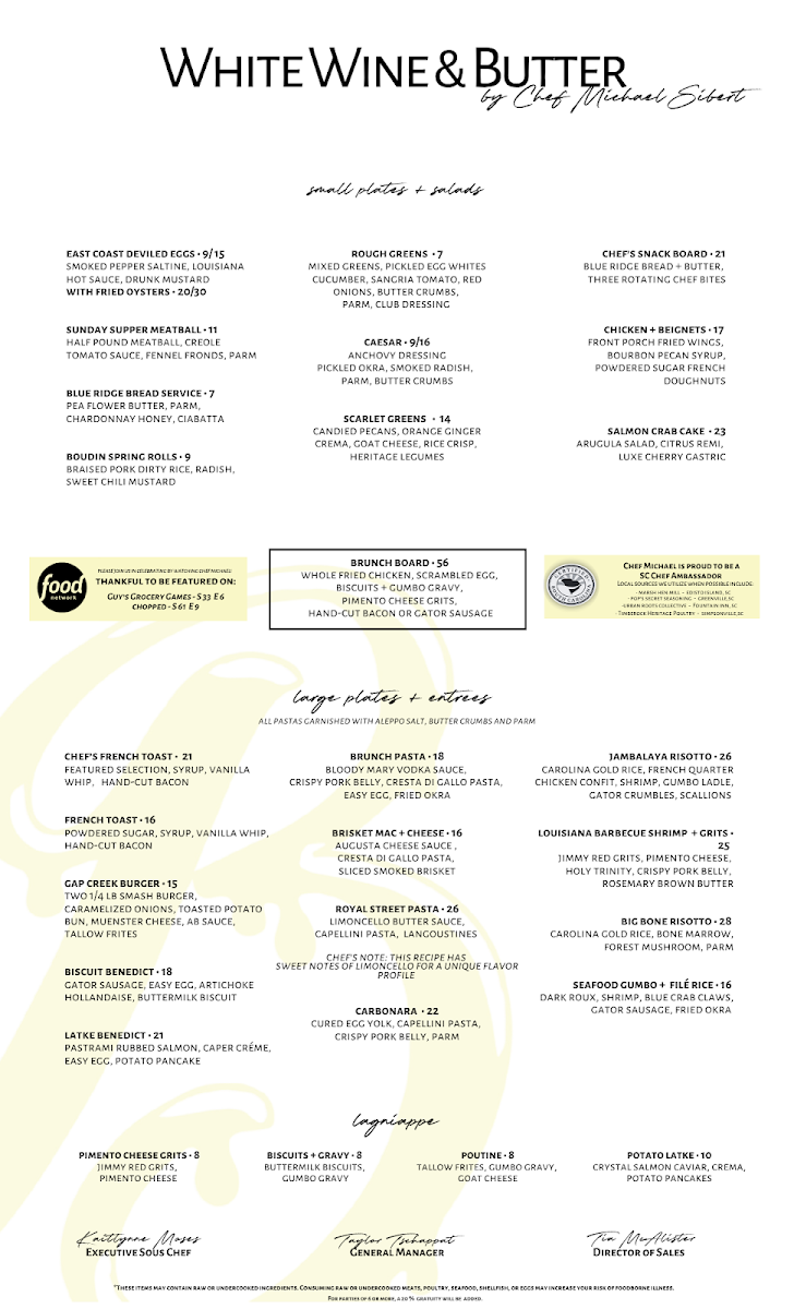 Overall, the White Wine & Butter @ Greer Golf Menu feels like a reflection of its setting-sophisticated yet approachable, indulgent yet inviting. It’s a place where comfort food meets creativity, where every plate tells a story, and where guests can linger over a meal that feels both familiar and special.